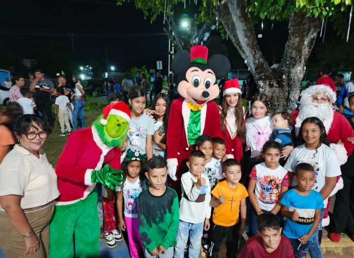 En el tradicional Encendido de Luces de Esperanza y Paz, en la comunidad El Potrero, municipio San Carlos, más de 400 niños y niñas recibieron cotillones por parte de la primera dama del municipio Delma Herrera, en cumplimiento con los lineamientos del alcalde Alexander Mireles.